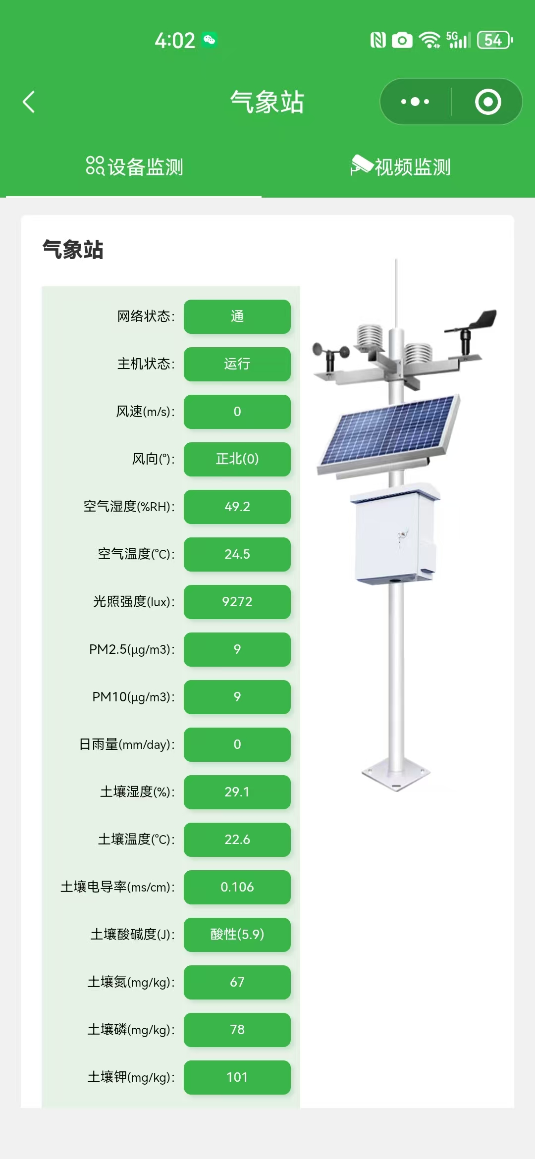 - 园区内每50亩设置1台?多参数室外气象站?,实时采集风速、降雨量、光照强度、空气温湿度、霜冻指数等10项数据,每10分钟上传至云端平台。